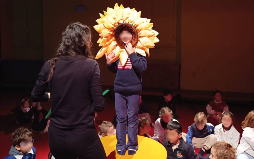 Il gioco-spettacolo è un supporto alla didattica che offre agli insegnanti uno strumento capace di stimolare la curiosità e l’attenzione dei bambini. «Bambini e attori entrano insieme nella scena da rappresentare; tutto diventa un grande gioco da cui emerge lo spettacolo educativo», spiega la morà. Il funzionamento è fluido e adattabile: «Gli attori hanno un copione che viene gestito in base alla partecipazione dei bambini, senza creare interruzioni percepibili». Gli attori chiamano i bambini e spiegano loro cosa fare – il porcospino, gli alberi, il girasole – e nel giro di pochi minuti si va in scena.
