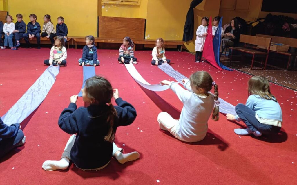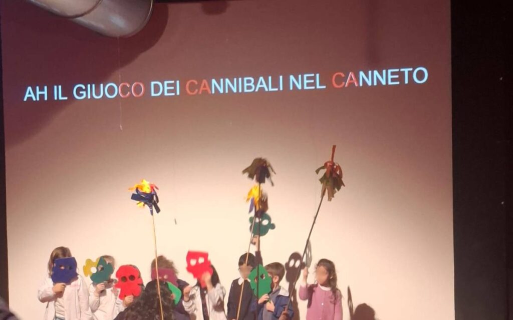 Il Teatro Trebbo è uno spazio pensato per coinvolgere attivamente il pubblico più giovane. Qui i bambini hanno assistito e preso parte a un’esperienza che ribalta il rapporto tradizionale tra scena e platea. «È un teatro partecipativo e la particolarità è proprio questa: i bambini diventano attori attivi, partecipanti allo spettacolo. Hanno “recitato” alcune poesie di Montale attraverso tante scene in cui erano coinvolti direttamente» racconta la morà Rosa, portavoce del team delle prime che li ha accompagnati.