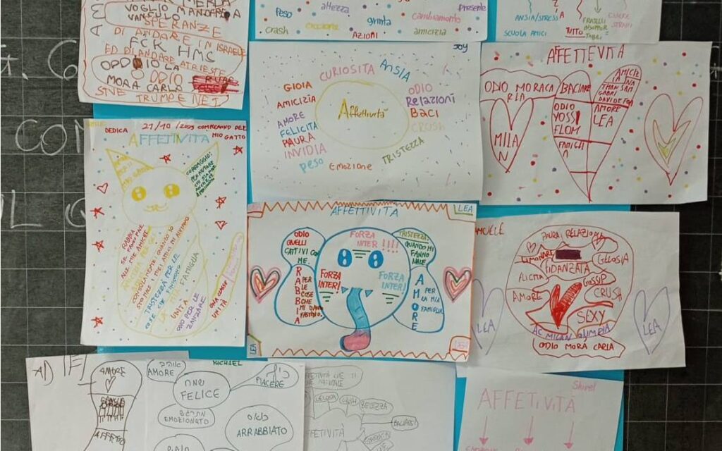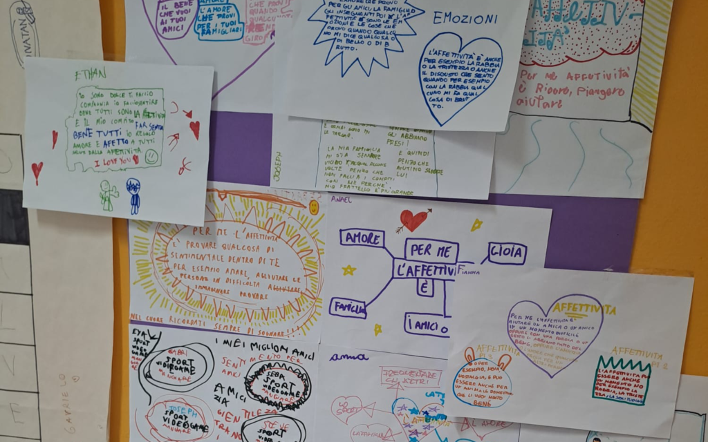Il lavoro proposto da Ippoliti ha dato spazio all’espressione personale: disegni, parole chiave, riflessioni scritte che i bambini hanno poi scelto se condividere o meno con il gruppo. Un esercizio che ha richiesto tempo e delicatezza, soprattutto per chi faceva più fatica a esporsi. «Non sono abituati a parlare di sé davanti alla classe: per questo è stato importante rispettare i loro silenzi tanto quanto le loro parole», racconta. Alcuni hanno preferito affidare i propri pensieri alla scrittura, altri sono stati più disponibili al confronto aperto. L’attenzione si è concentrata sul concetto di relazione: l’affetto come vicinanza, come cura, come desiderio di stare con l’altro. Si è parlato anche di innamoramento e di attrazione fisica, intesa in modo non sessualizzato ma come esperienza corporea ed emotiva: il tremore, la voglia di avvicinarsi. «A questa età l’attrazione è ancora molto pulita, passa dal tenersi per mano o dallo stare vicino. È importante legittimare queste sensazioni senza caricarle di significati che non appartengono ai bambini», sottolinea Ippoliti.