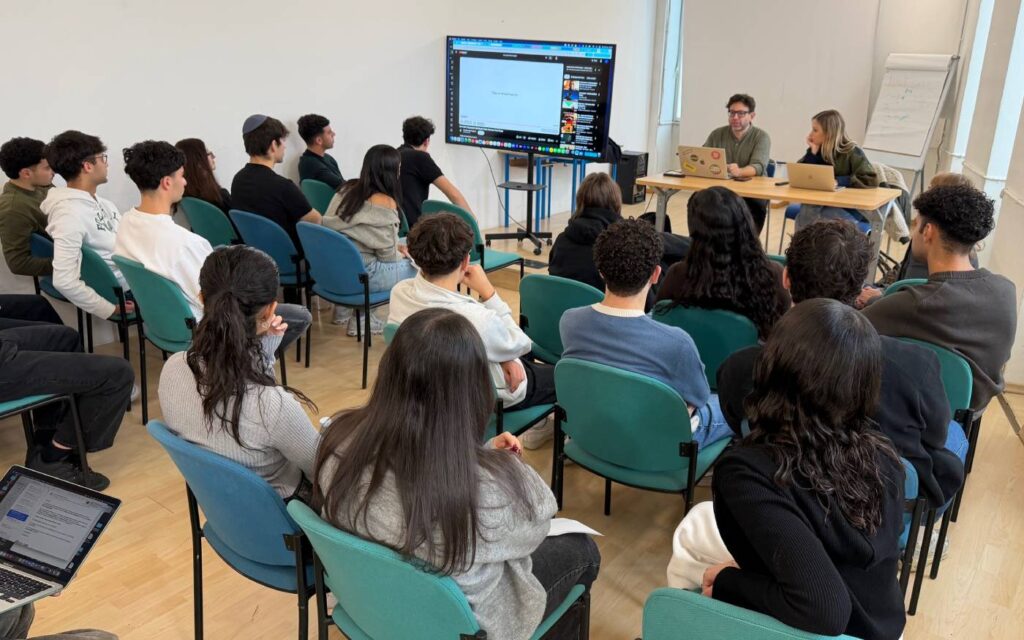 Durante la prima lezione, Barissever e la collega Ingrid Zanninello hanno aperto una finestra sul dietro le quinte della comunicazione: cos’è una campagna, come si struttura, quali sono gli elementi che la rendono efficace. Hanno parlato di concept, insight, tono di voce e piattaforme, mostrando ai ragazzi come un’idea, per funzionare, debba essere chiara, coerente e cucita su misura di chi dovrà riceverla. Poi è arrivato il cuore del lavoro: il brief. Gli studenti hanno analizzato gli obiettivi, il pubblico e gli strumenti da utilizzare. Il loro compito è raccontare in un video perché scegliere la Scuola Ebraica e perché scegliere lo scientifico o il tecnico, rivolgendosi sia agli studenti delle medie sia ai loro genitori. Mezzi disponibili: smartphone, creatività e capacità di osservare la Scuola con uno sguardo nuovo.
