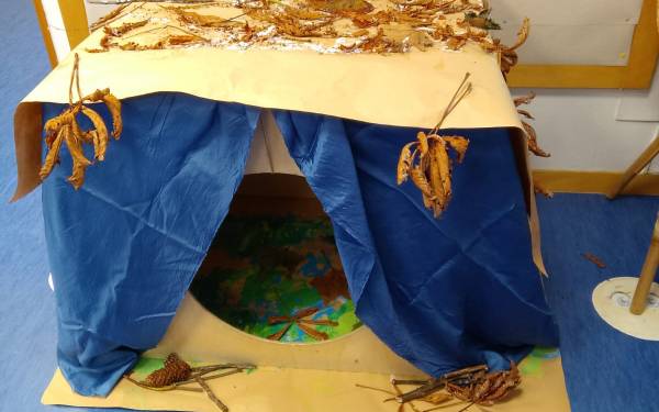 Una sukkà all’ingresso del nido costruita dai più piccoli per la festa di Sukkot